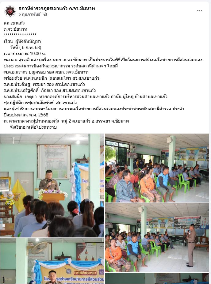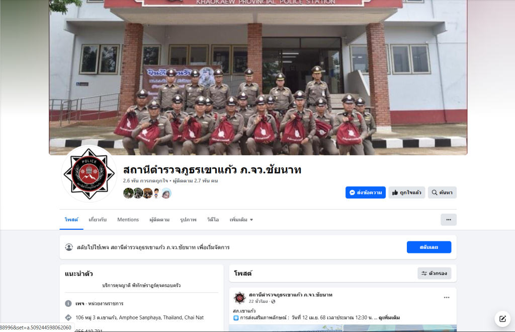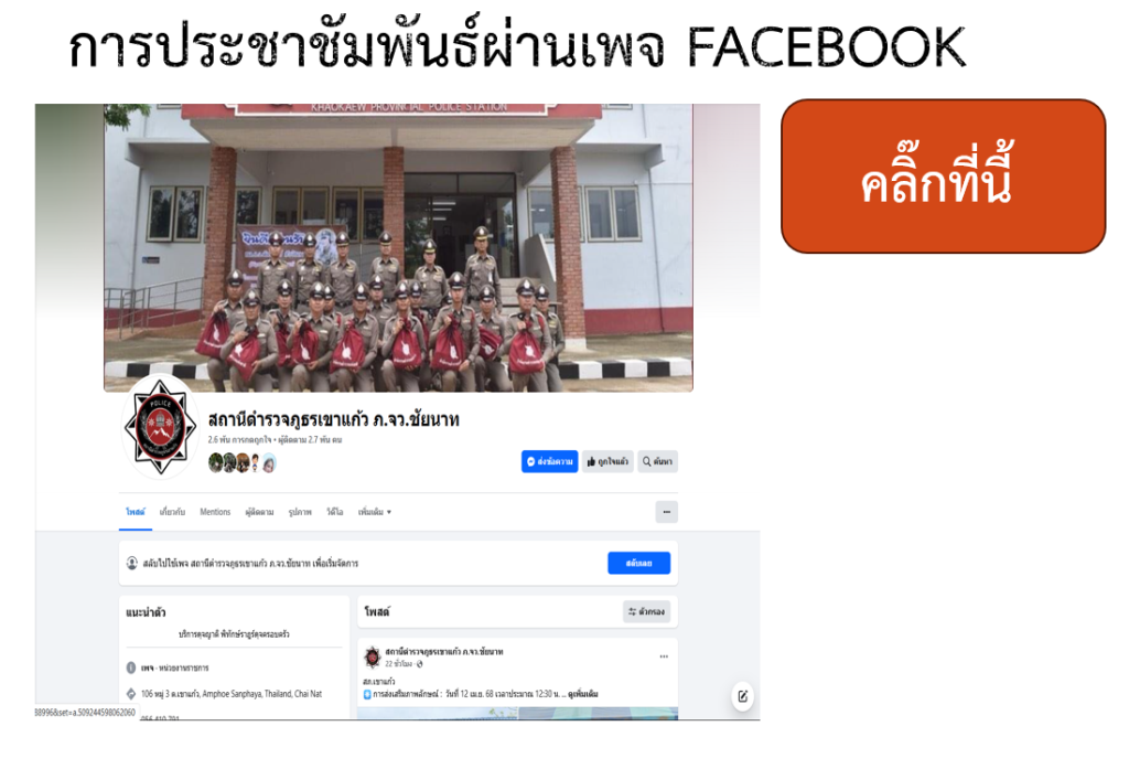 fackbook สถานีตำรวจภูธรเขาแก้ว/เพจ สภ.เขาแก้ว