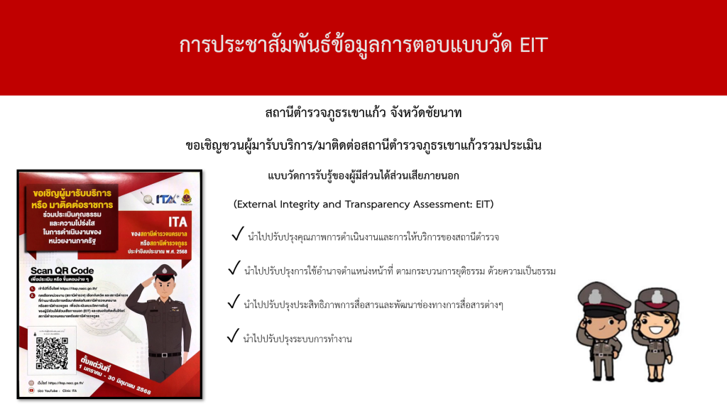 ข่าวสารการประชาสัมพันธ์ข้อมูลการตอบแบบวัด EIT ของหน่วยงานผ่าน Link หรือ QR Code สถานีตำรวจภูธรเขาแก้ว